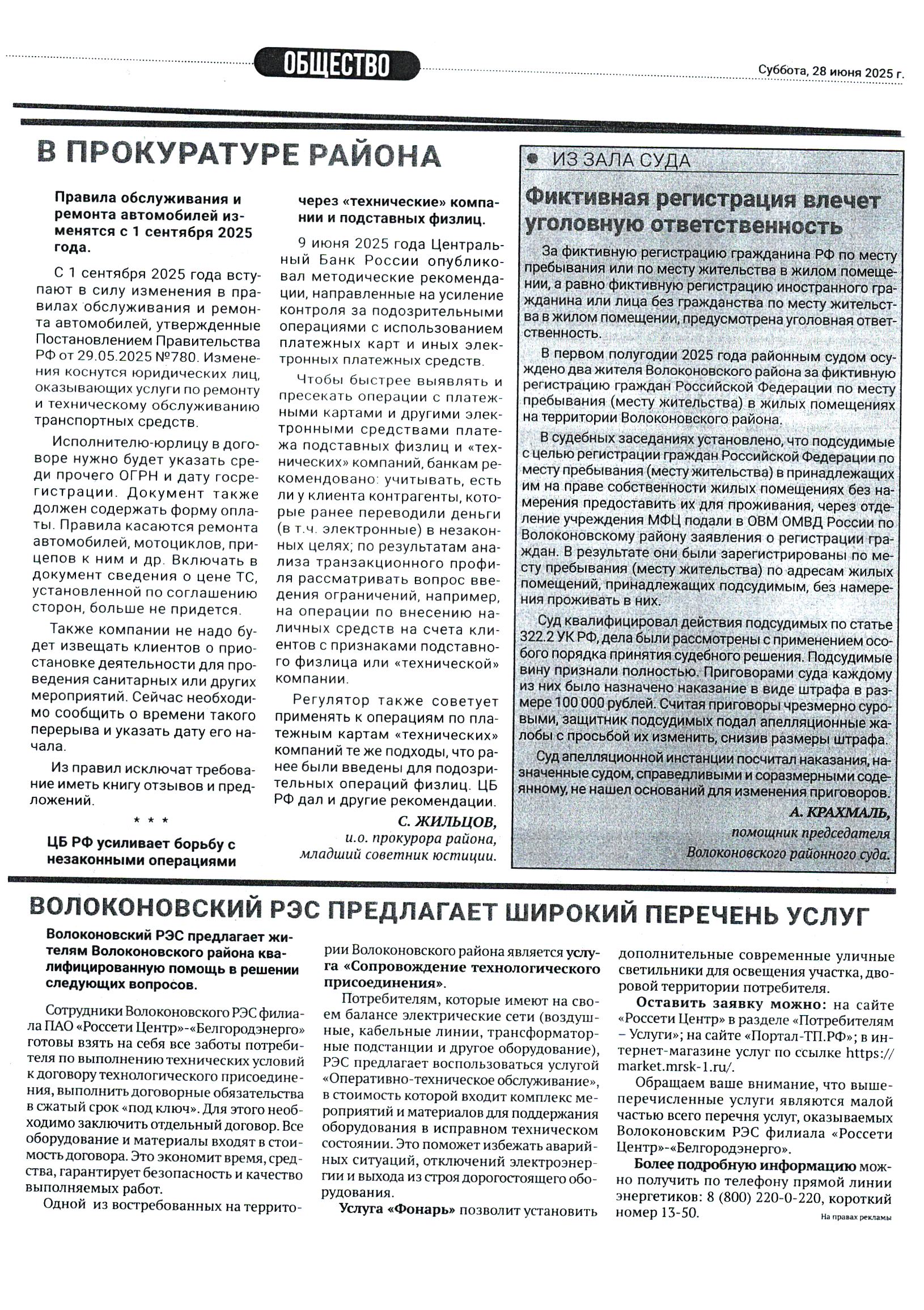 | Статья в газете Красный октябрь "Фиктивная регистрация влечет уголовную ответственность" | версия для печати |